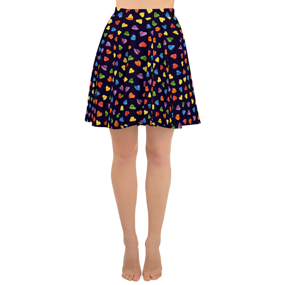Pride Dark Mini Hearts Skater Skirt